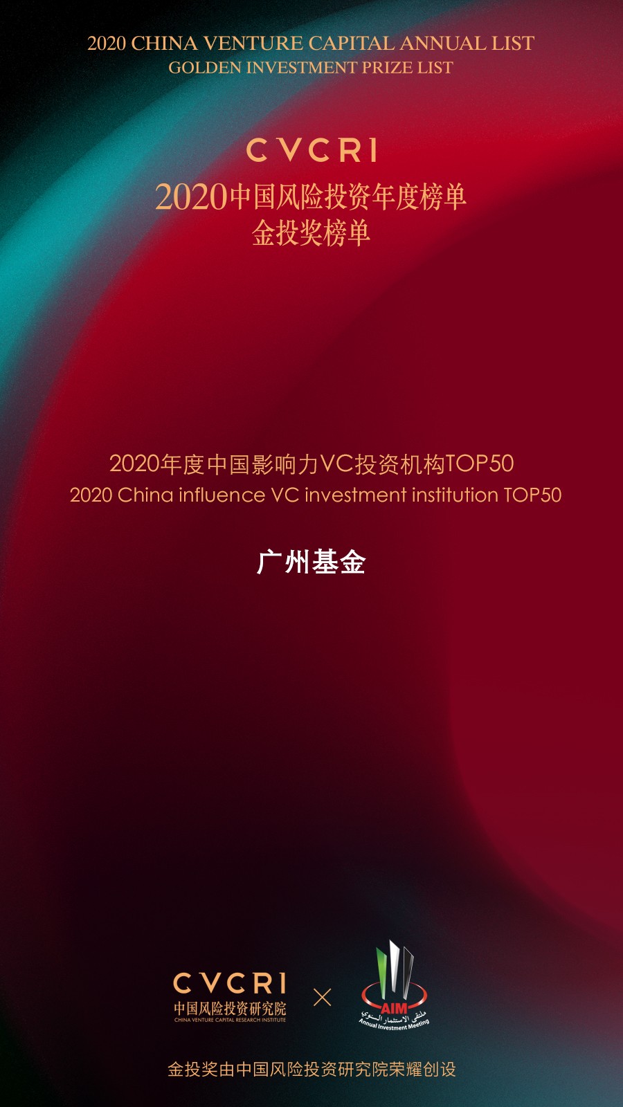 2020年12月10-11日, 2020中国风险投资论坛在深圳隆重举行。会上发布了2020中国风险投资年度榜单•金投奖榜单,广州基金获评“2020年度中国影响力VC投资机构TOP50”“2020年度中国影响力有限合伙TOP30”两项大奖,子公司科金控股及新兴基金分别获评“2020 年度中国最佳互联网/移动互联网领域投资机构 TOP30”“2020 年度中国政府引导基金 TOP30”。